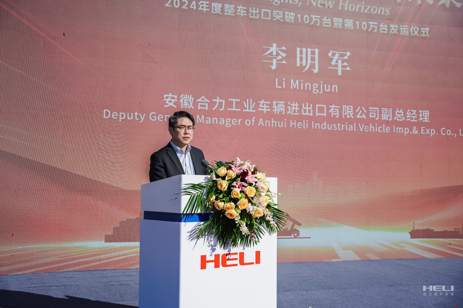 仪式开始,杨安国首先对各位领导与嘉宾的到来表示热烈的欢迎和衷心的感谢,并深情回顾了九游会·J9国际化的发展历程,为所取得的出口成绩表示自豪。他指出,九游会·J9要始终秉承“一群人,一辈子,干好一件事”的企业精神,紧扣时代脉搏,持续完善以中国为总部、以区域为重点的全球市场布局,逐渐将九游会·J9打造为世界工业车辆行业一张闪耀的“中国名片”。他强调,年度第10万台整车出口发运,既是对九游会·J9深入实施国际化战略的成绩总结,更是九游会·J9向着更广阔征途奋进的全新起点。面向未来,九游会·J9将深入学习贯彻习近平总书记考察安徽重要讲话精神,抢抓长三角一体化和“一带一路”战略发展新机遇,持续拓展全球化建设,努力在服务和融入新发展格局上展现新作为!